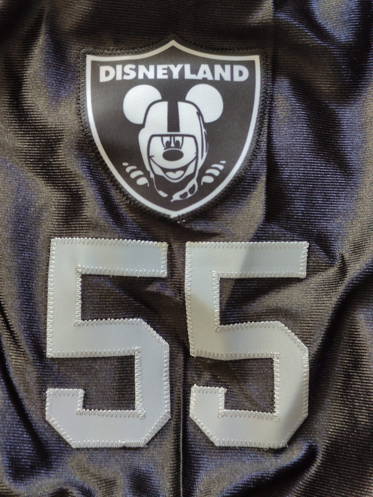 Disneyland Football Jersey (Raiders Loyal Silver & Black) Embroidered Baseball Jersey! With "Disney "D" on the sleeve to match our entire jersey line and a loyal Mickey on the sleeve and chest as a crest.